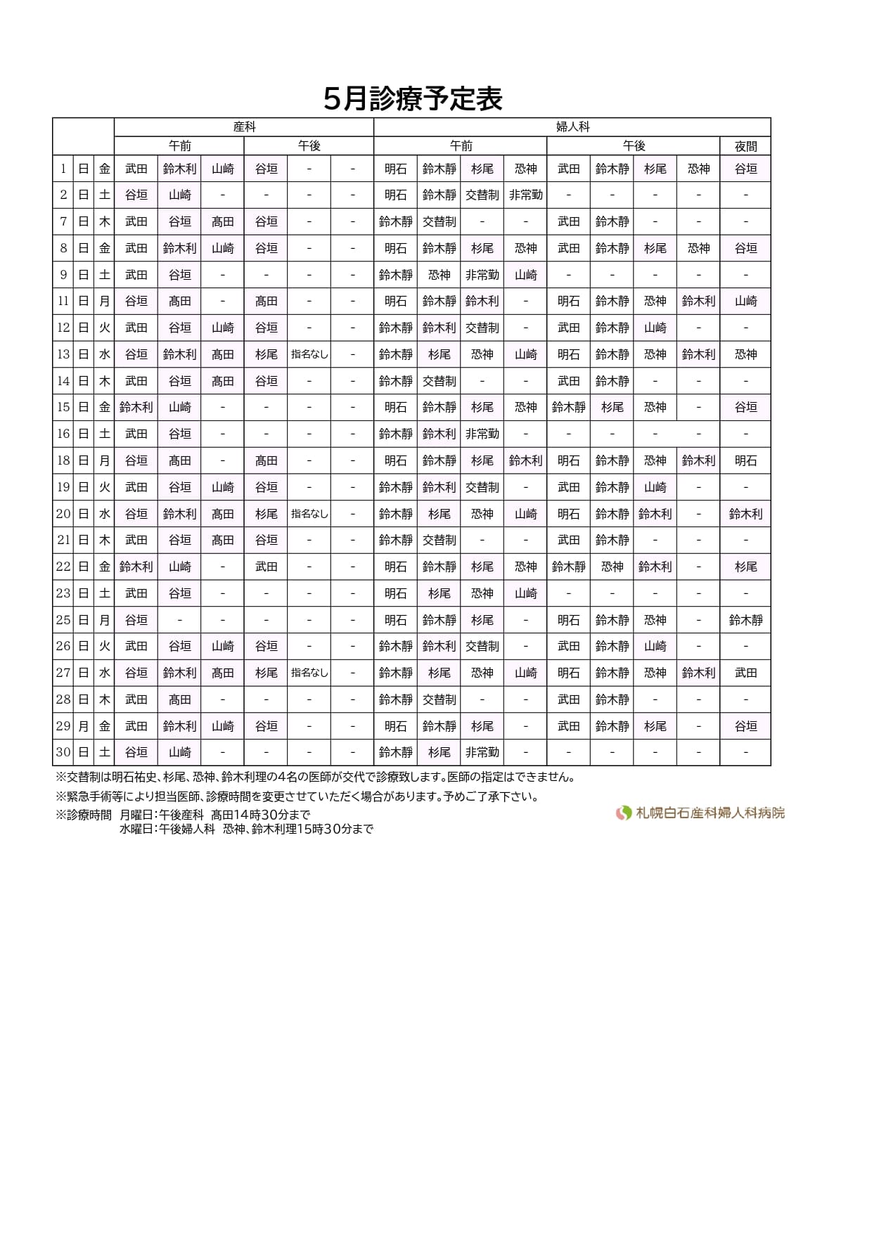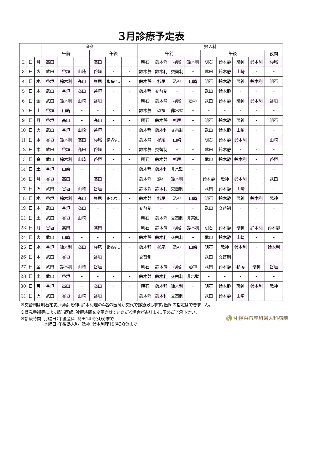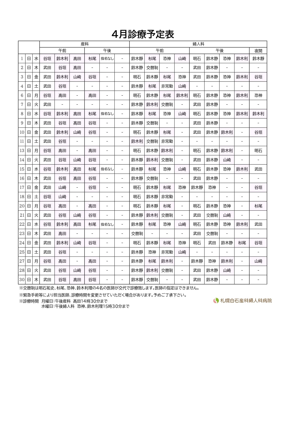 ※日曜日は妊婦健診のみの診療で完全予約制です。診療時間は9:30~11:30となります。対象の妊婦さんが限られますのでご確認のうえご予約をお願いします。